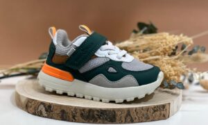 Basket SHOOPOM à scratch, en vert sapin et moutarde