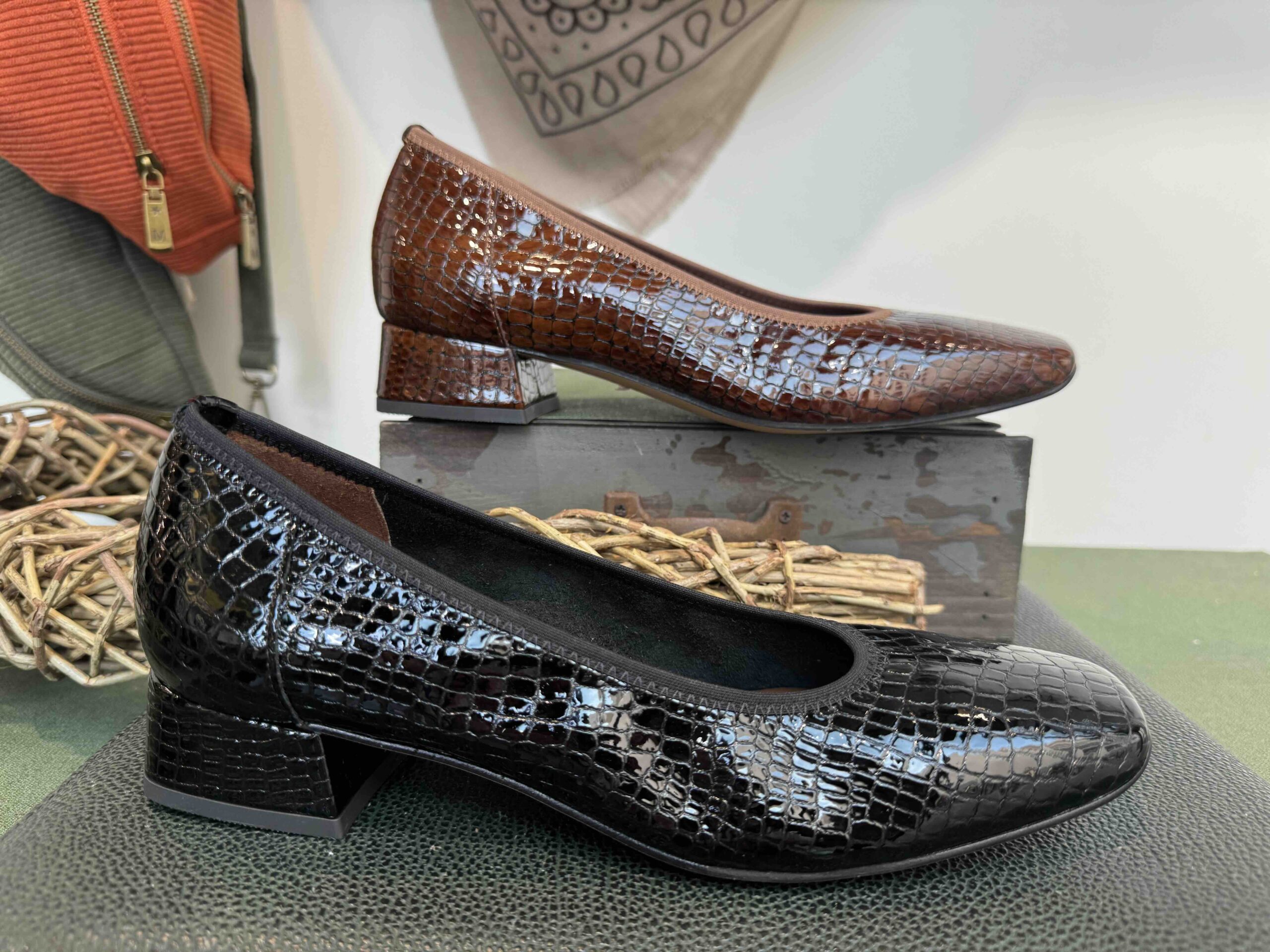 quantité de Ballerine ZOI noire ou chocolat vernis croco