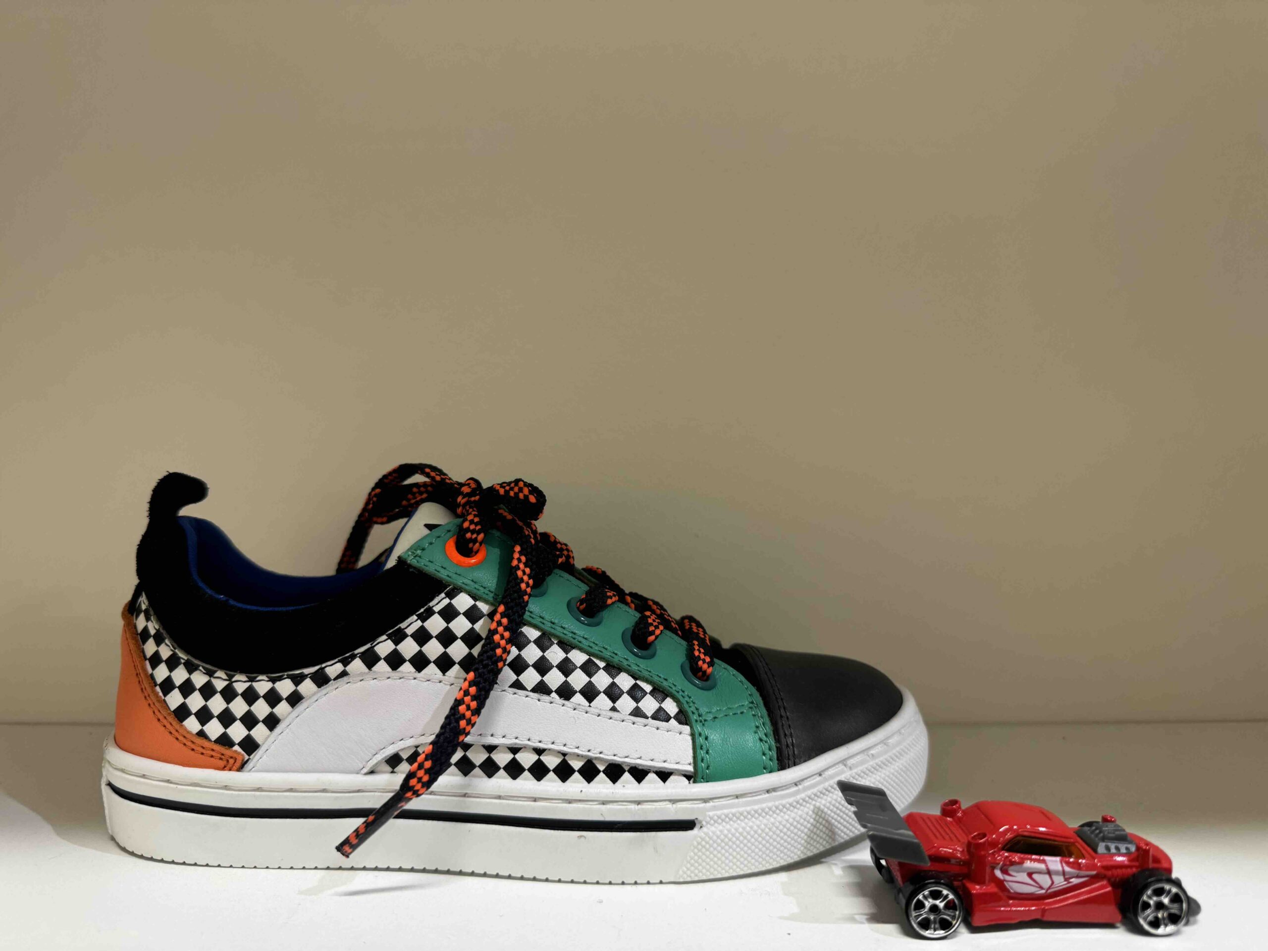 quantité de Basket ACEBOS à lacets + zip coloré avec motif damier