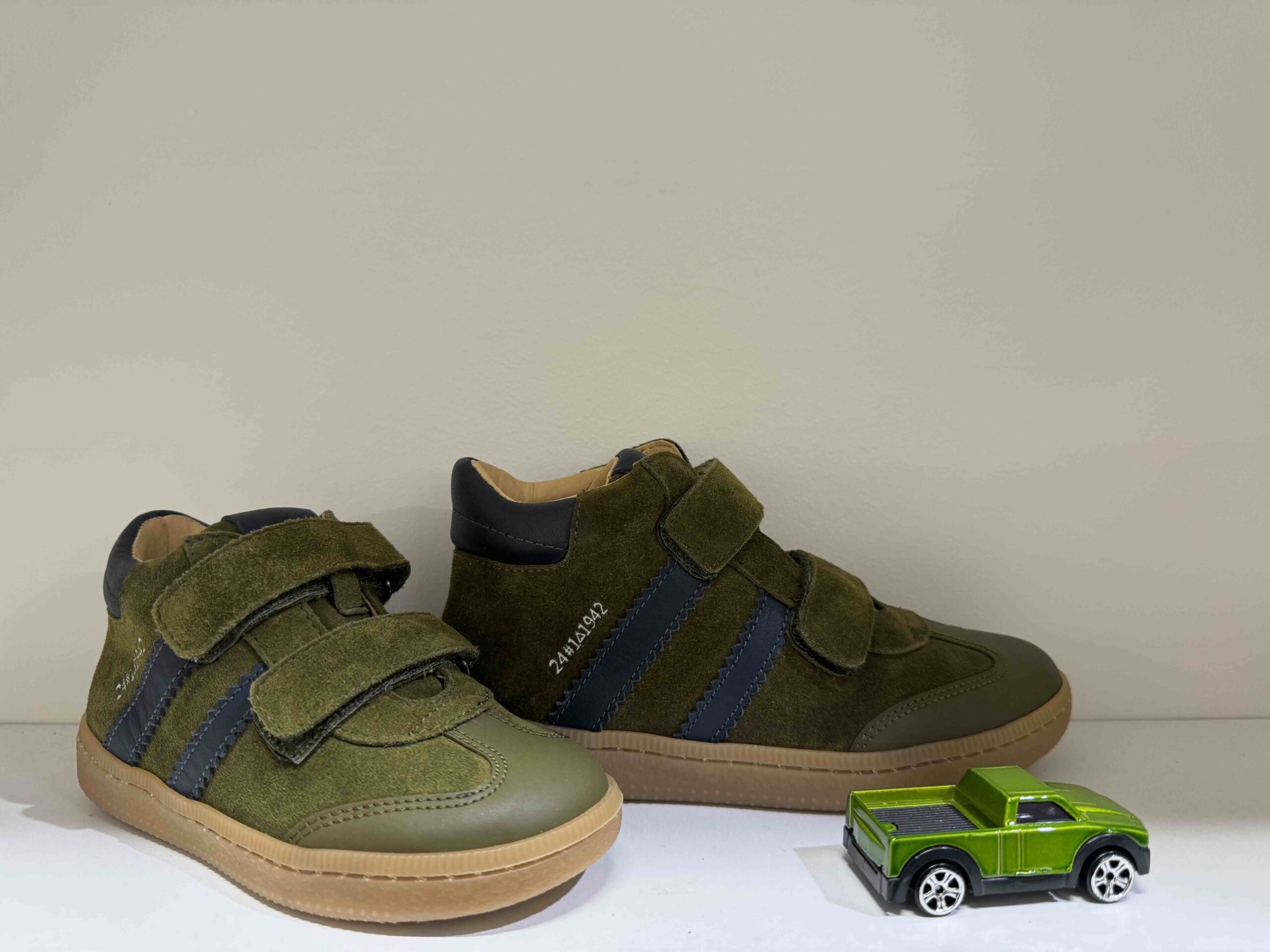 Basket ACEBOS montante à scratch en nubuck kaki et bleu marine