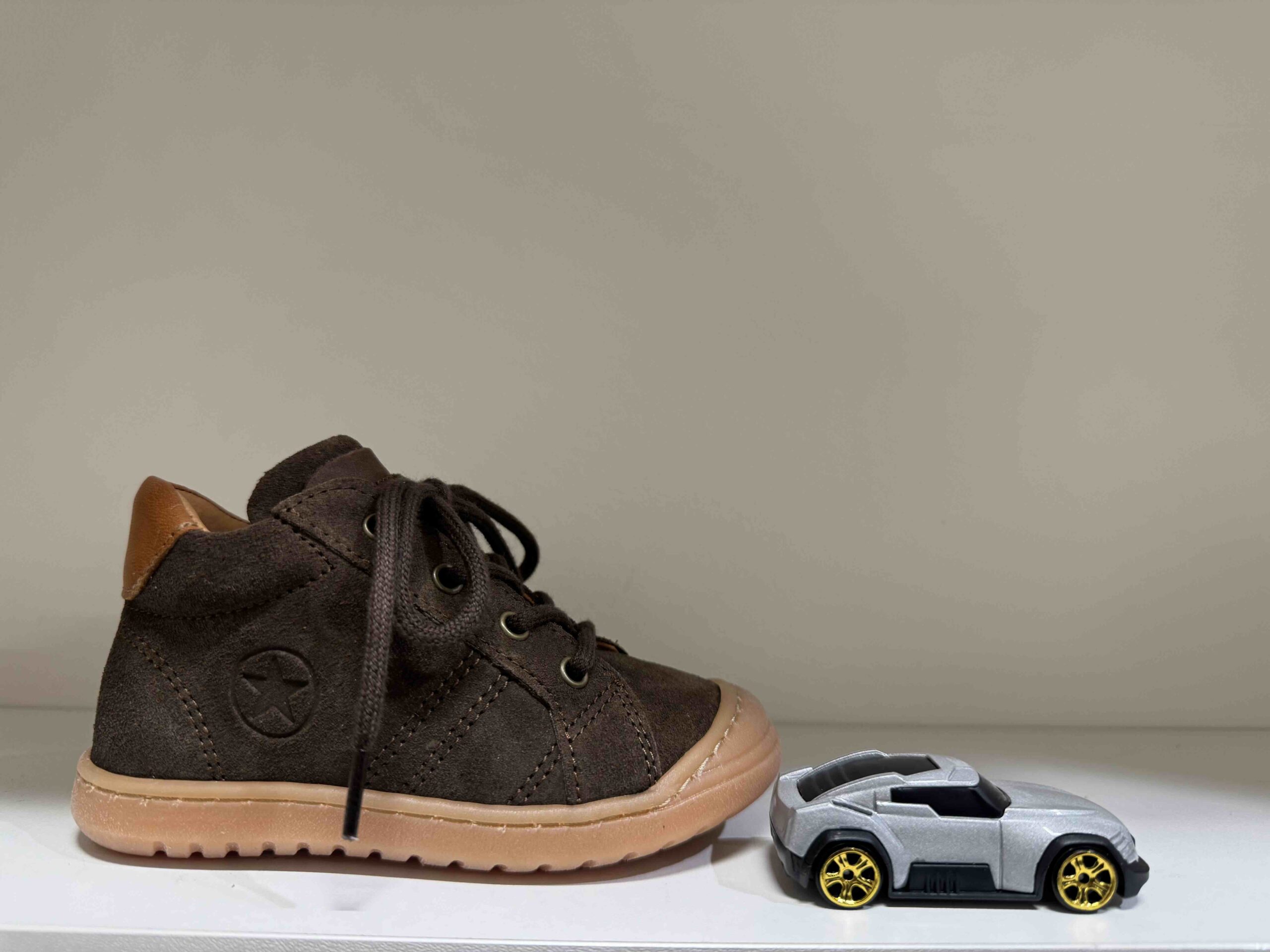Basket BISGAARD montante à lacets + zip en nubuck chocolat
