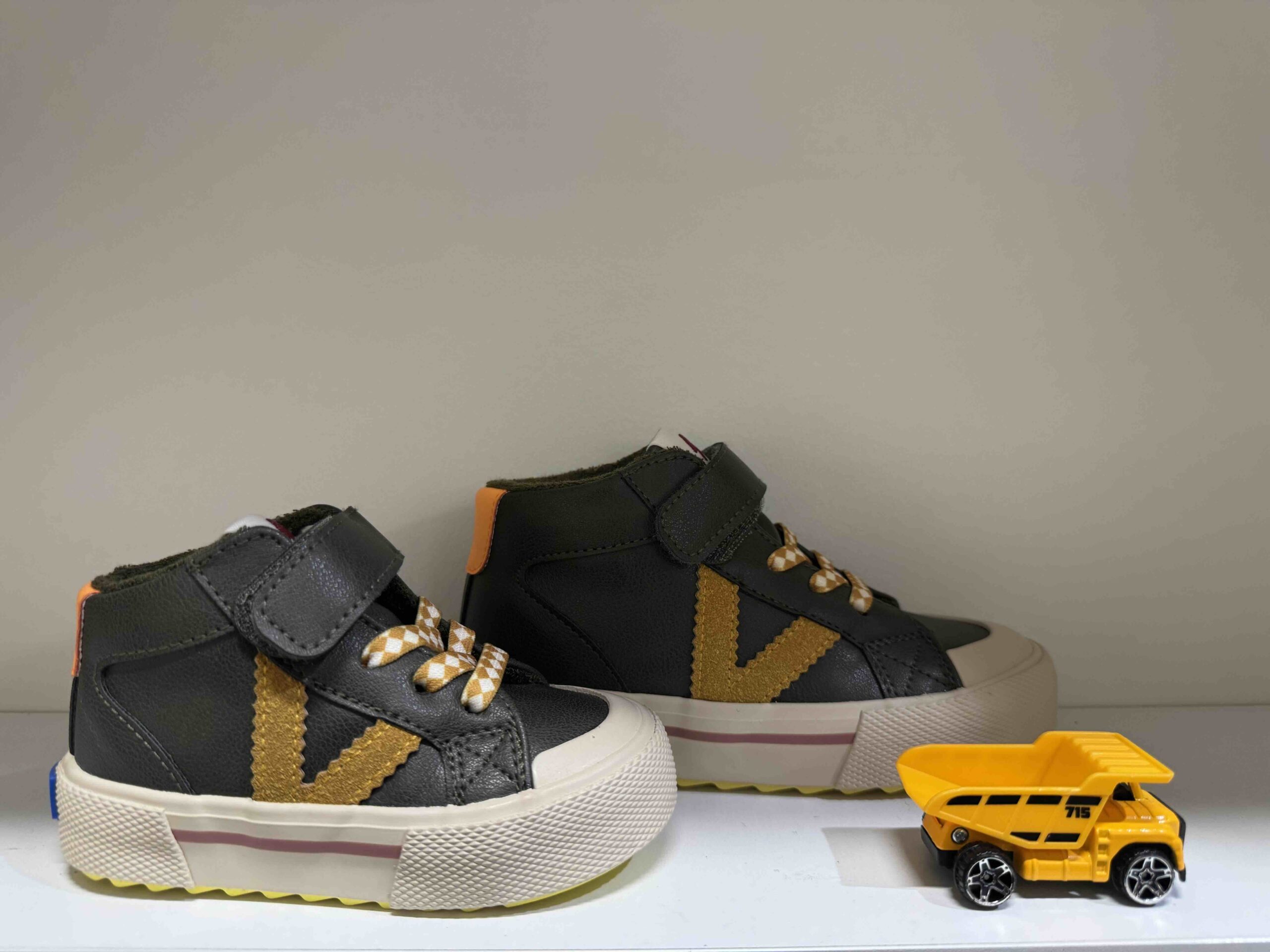 titreBasket VICTORIA montante à scratch en kaki et moutarde