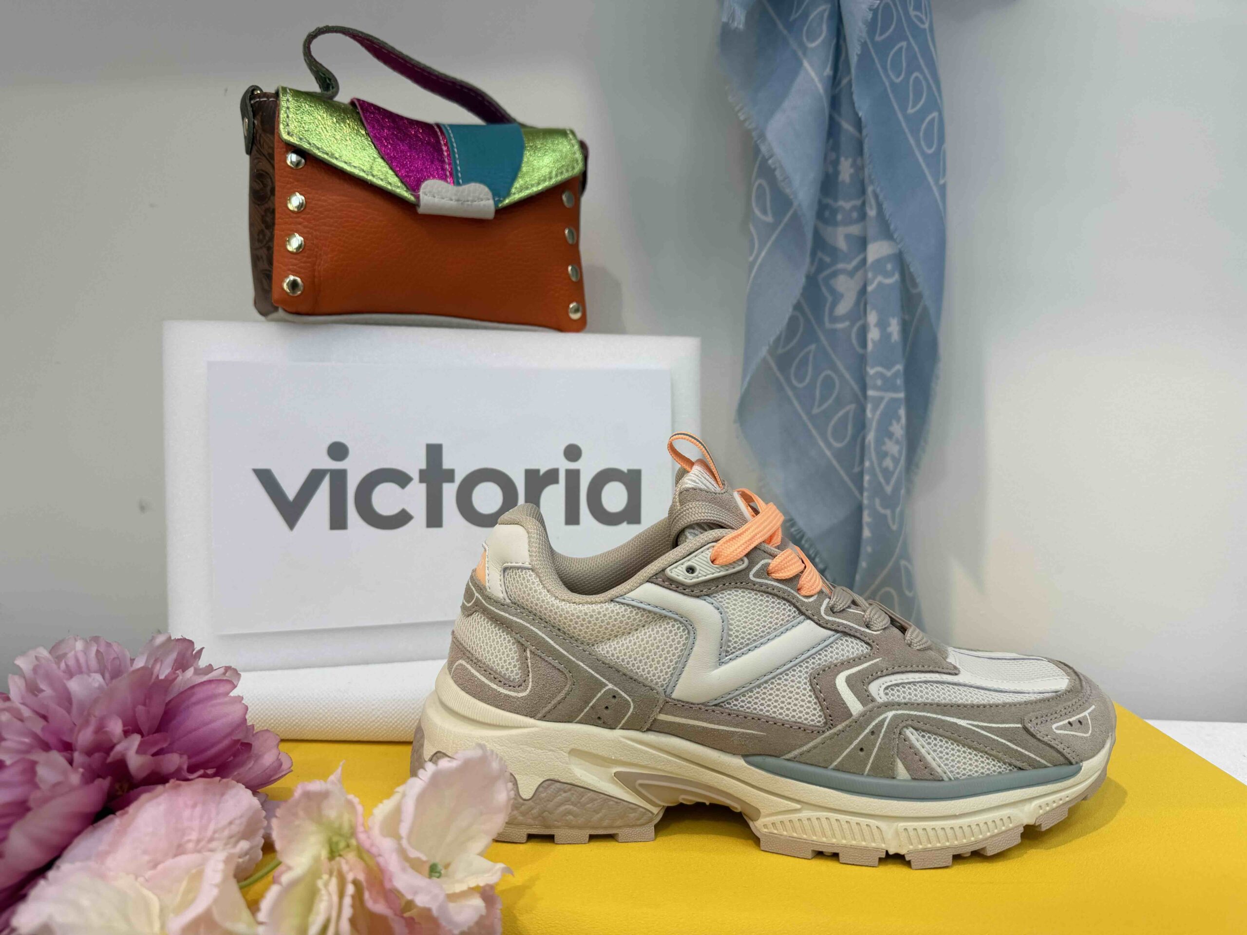 quantité de Basket VICTORIA semelle style running : beige et orange