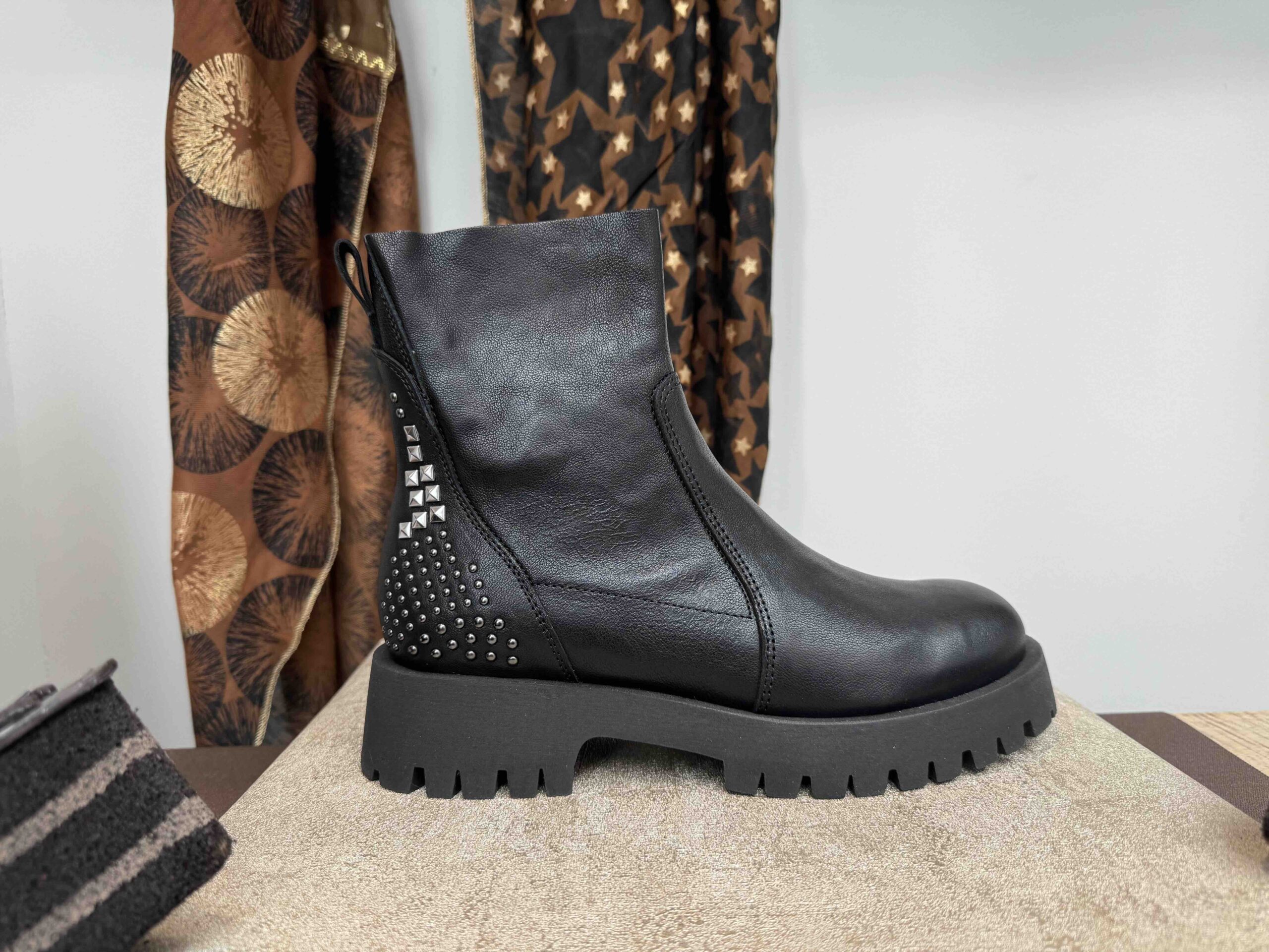 / Boots MIMKA crantée à clou, cuir souple noir