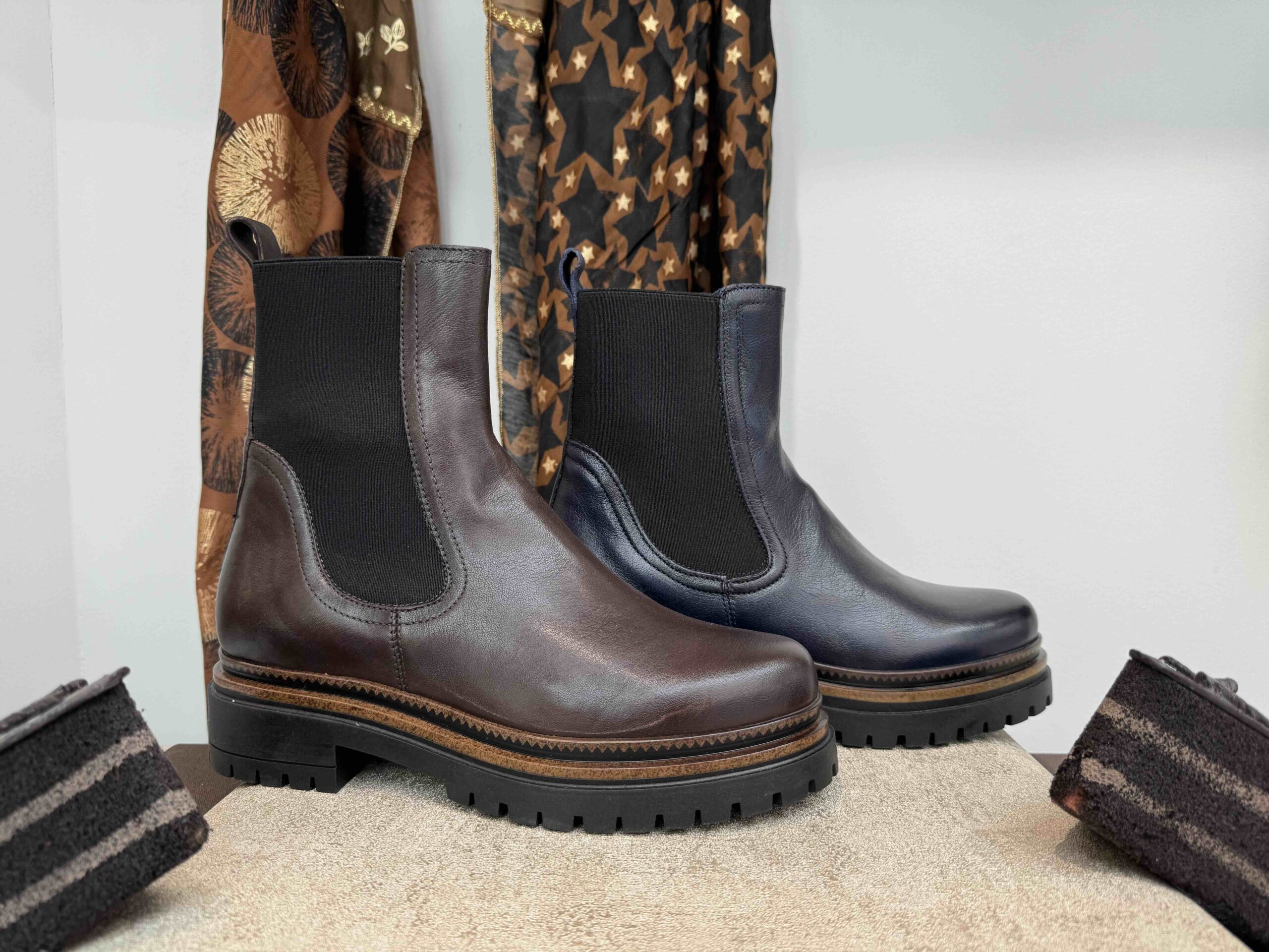 / Boots MJUS élastiquée en cuir bleu marine ou chocolat