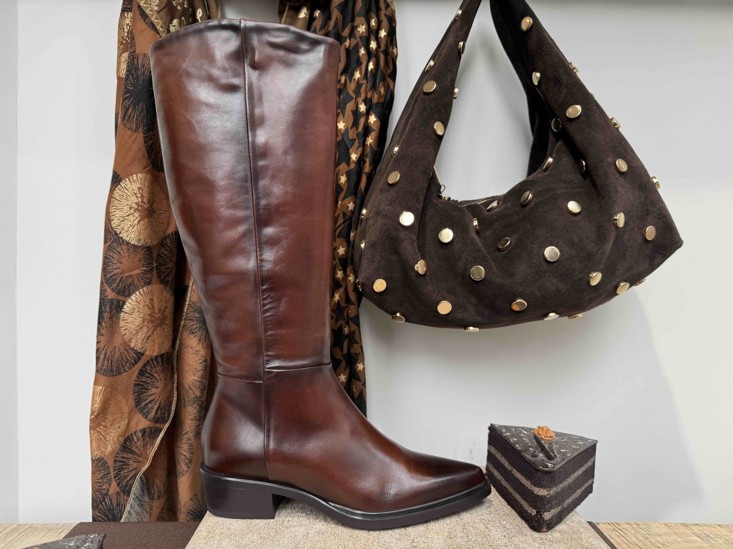 / Botte MJUS à petit talon, camel avec des reflets noir