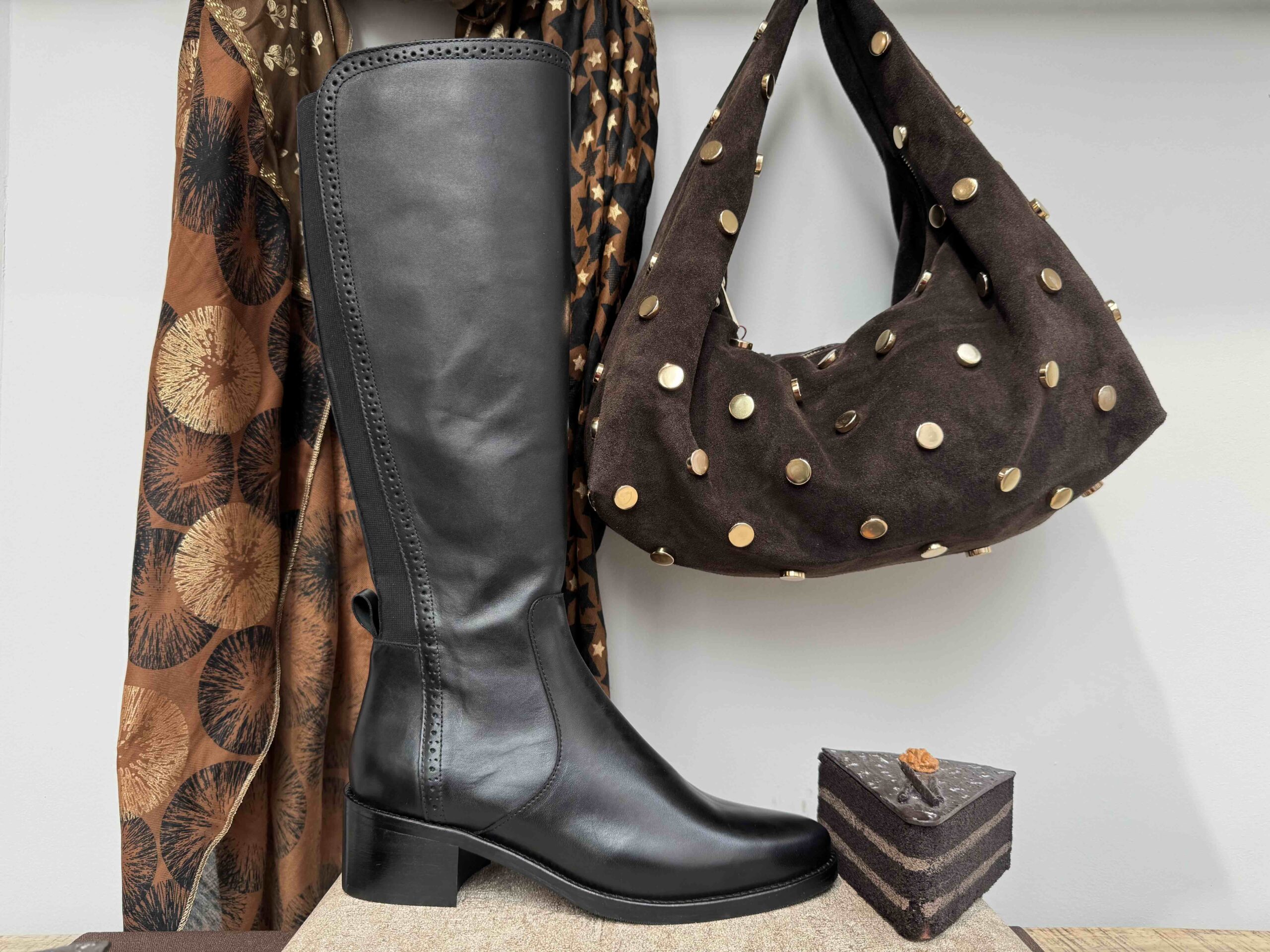 / Botte MYMA cavalière avec des détails, en cuir noir
