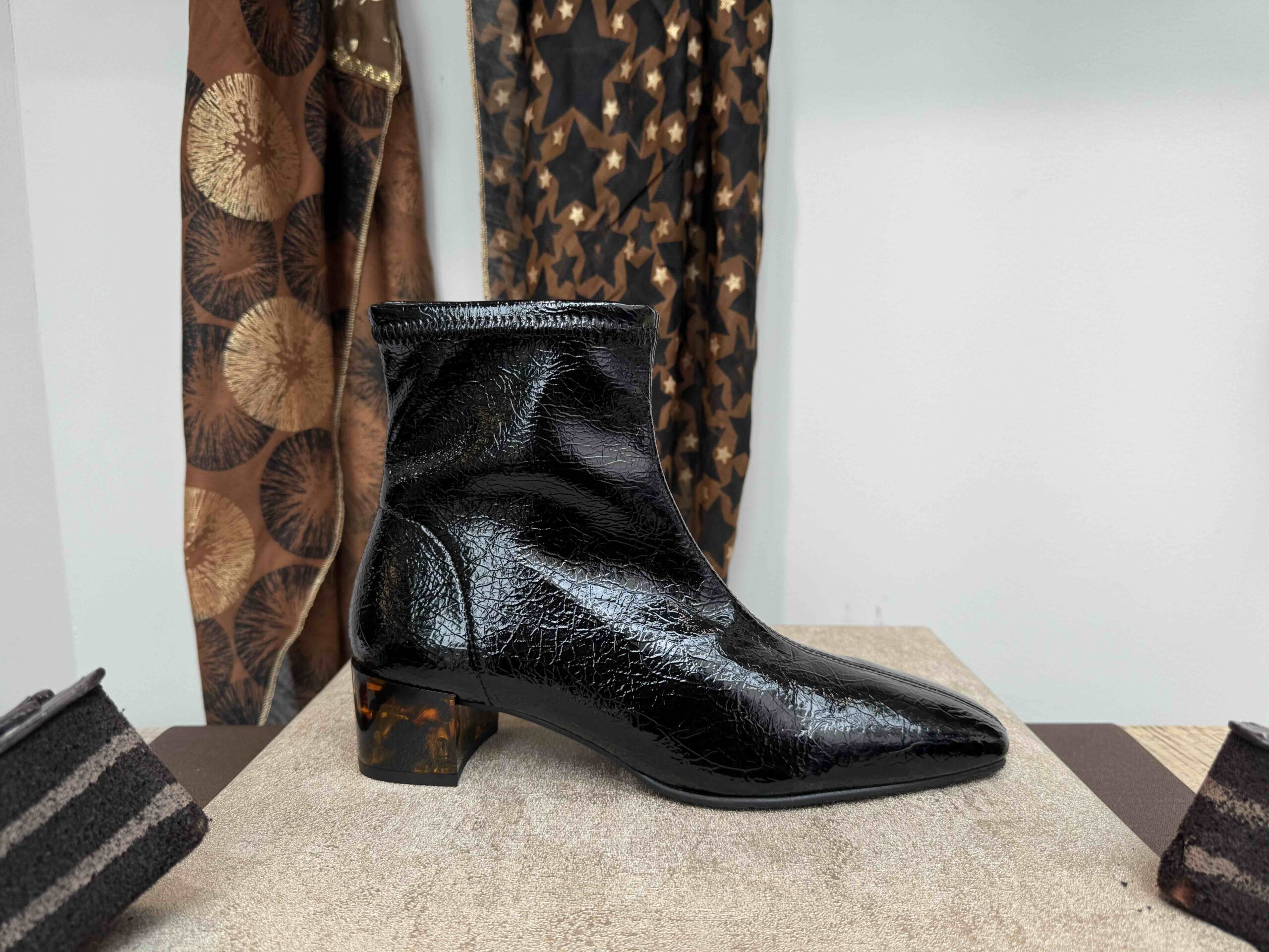 / Bottine MISS ÉLASTIQUE à talon original, en stretch cuir vernis noir