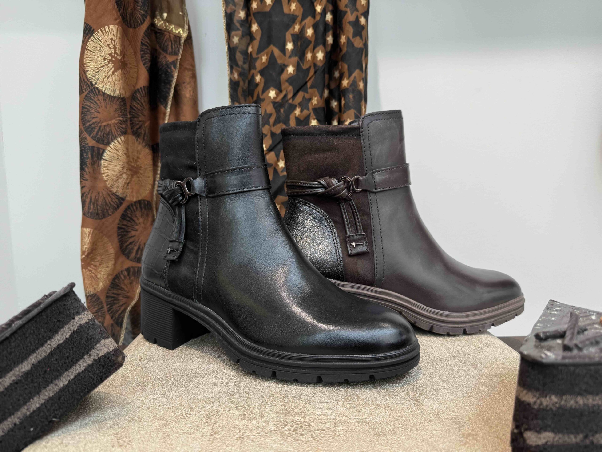 Bottine TAMARIS à talon épais + motifs noire ou chocolat