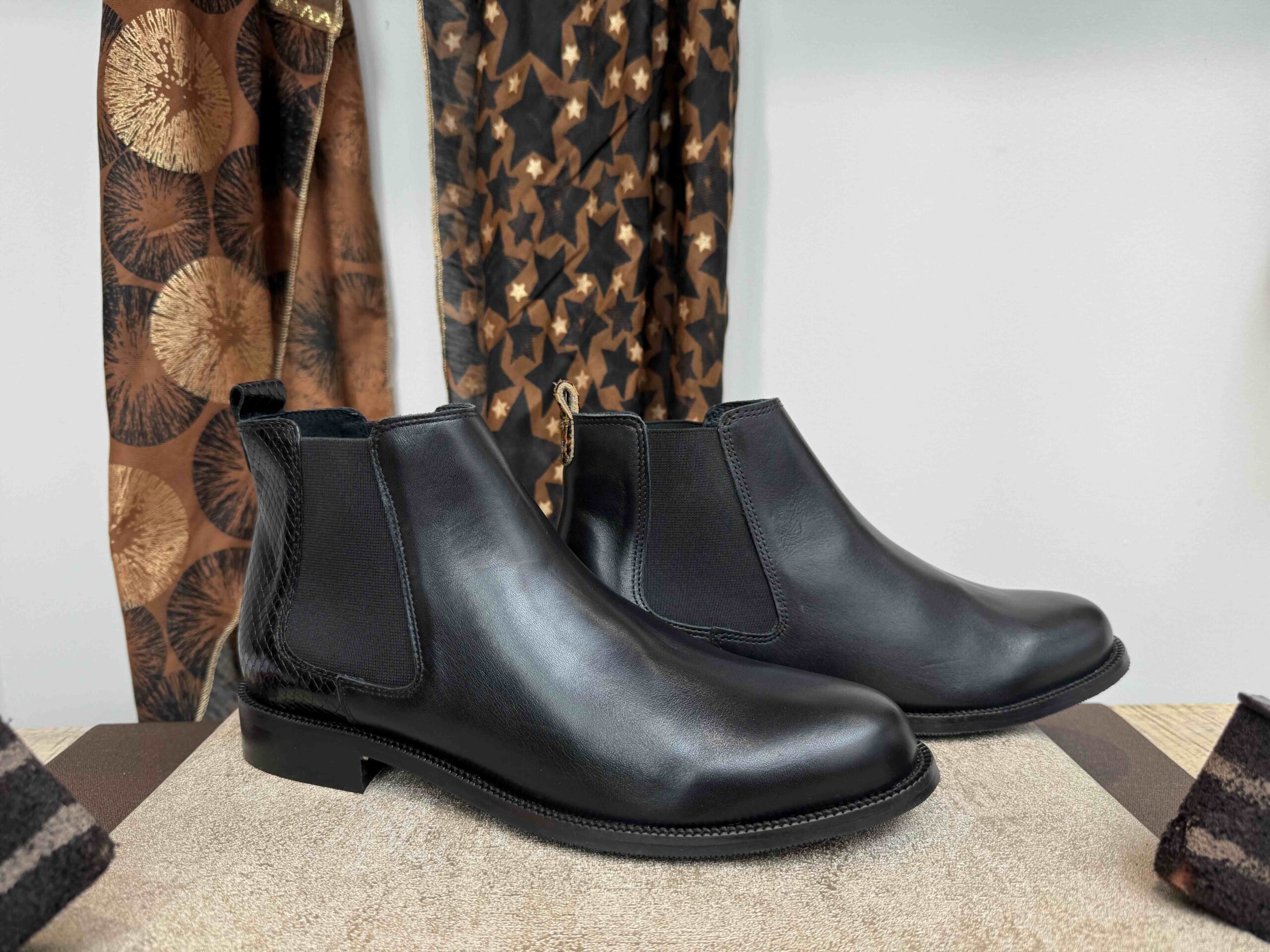 titreCavalière MAROLI cuir noir + détails léopard ou croco