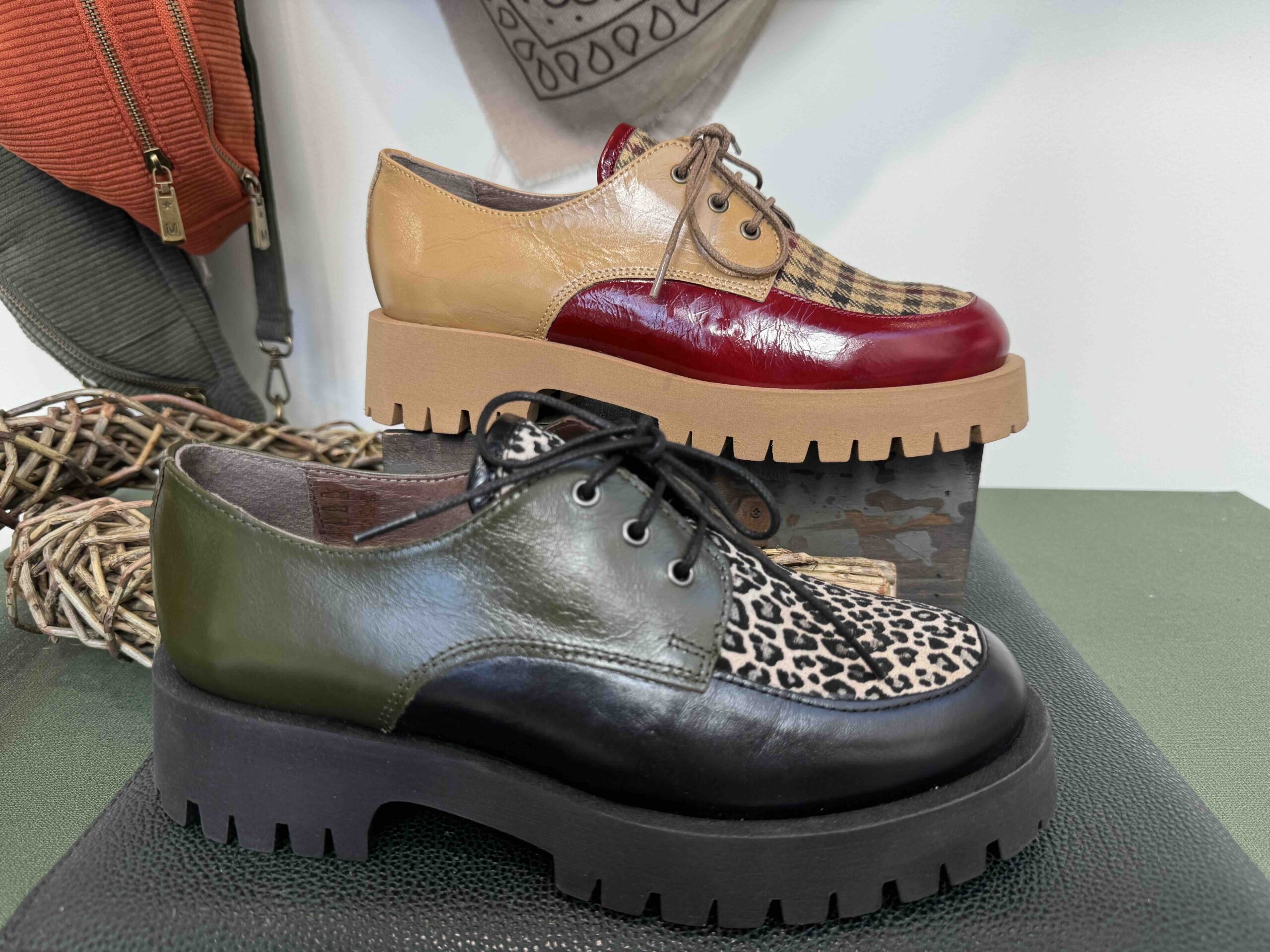 / Derby MIMKA rouge et beige ou noir et kaki avec motif