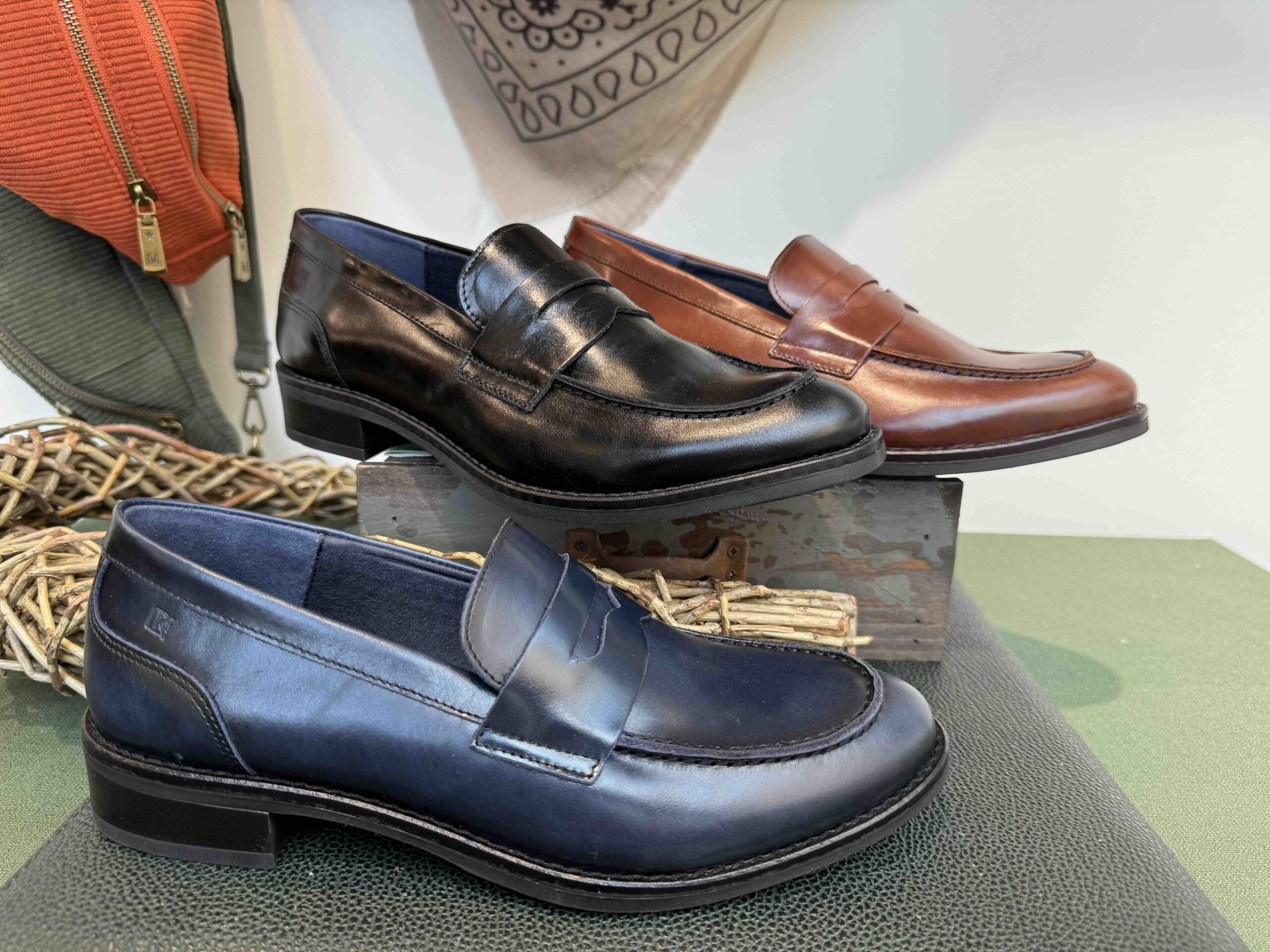 quantité de Mocassin DORKING cuir bleu marine, camel ou noir