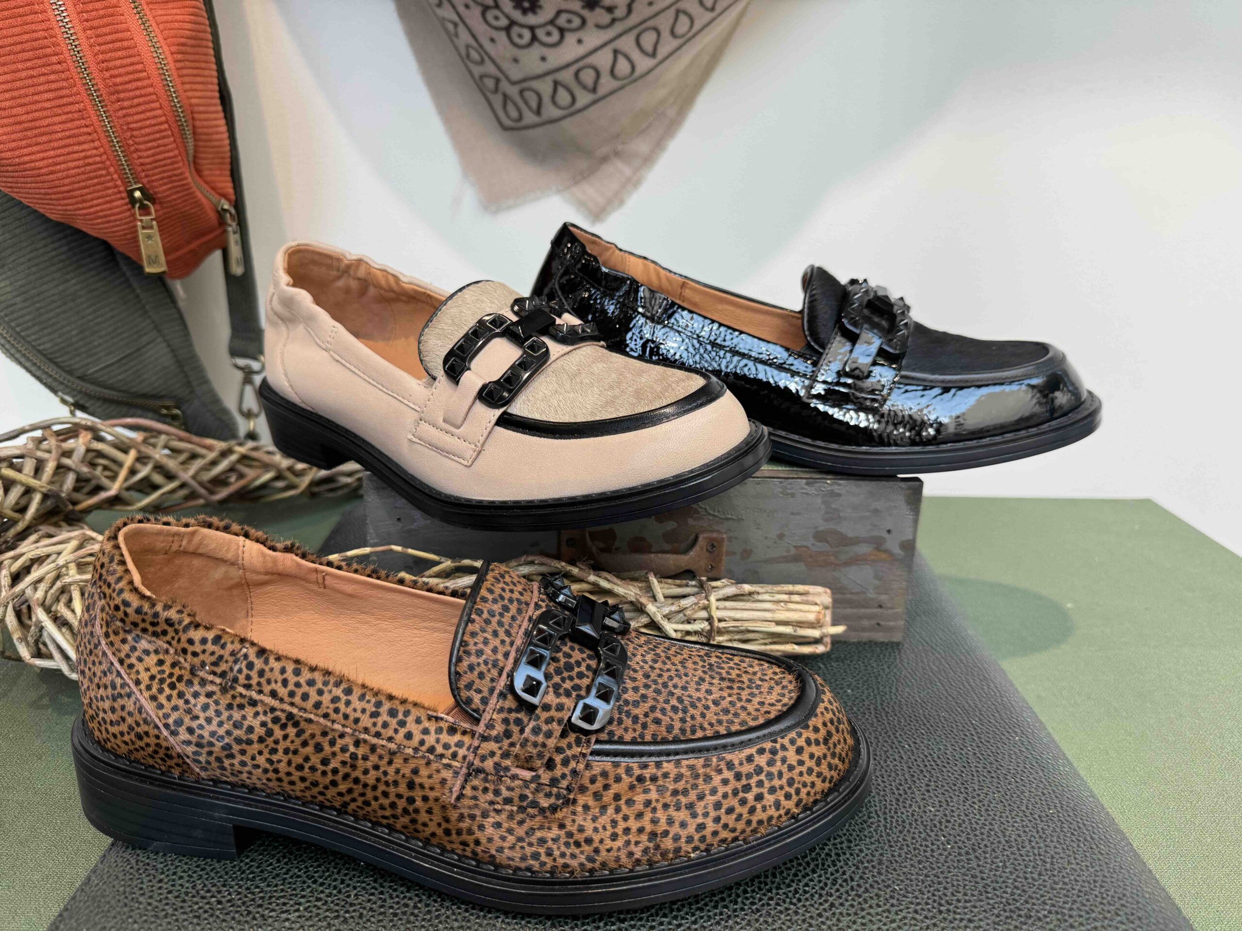 quantité de Mocassin MAM'ZELLE avec boucle à clou léopard, noir vernis ou beige