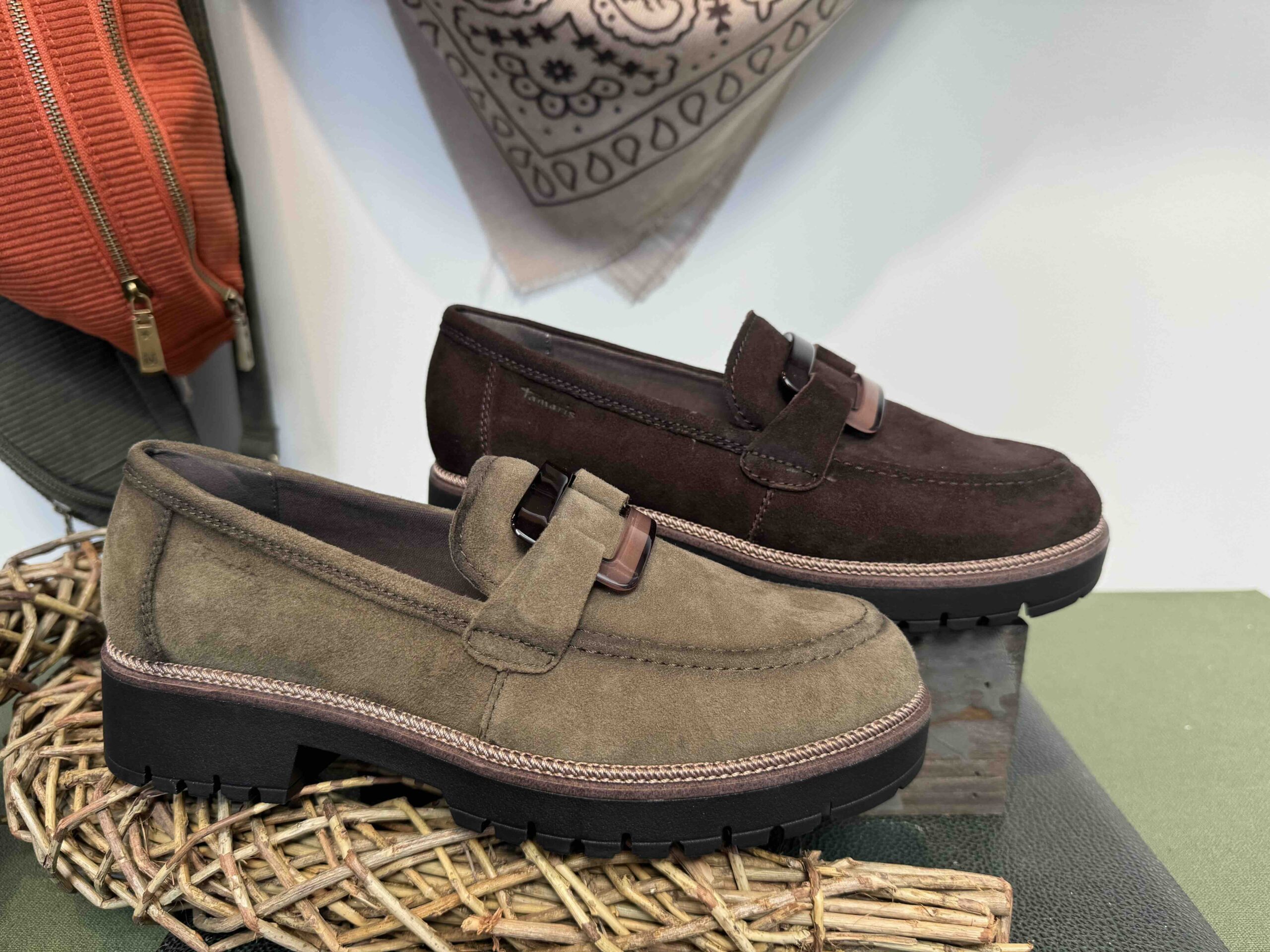 quantité de Mocassin TAMARIS semelle épaisse en nubuck kaki ou chocolat