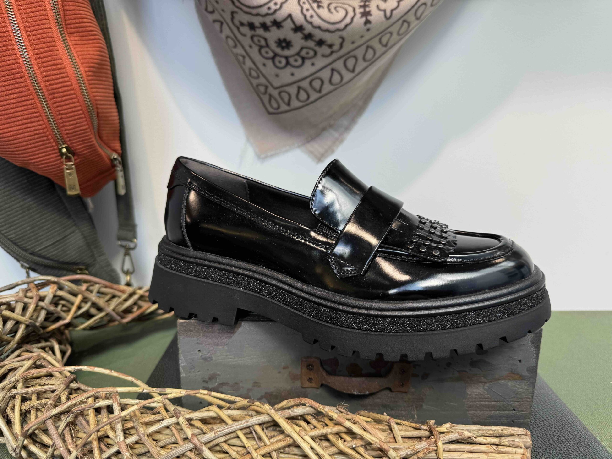 / Mocassin TAMARIS semelle épaisse vernis noir à clou