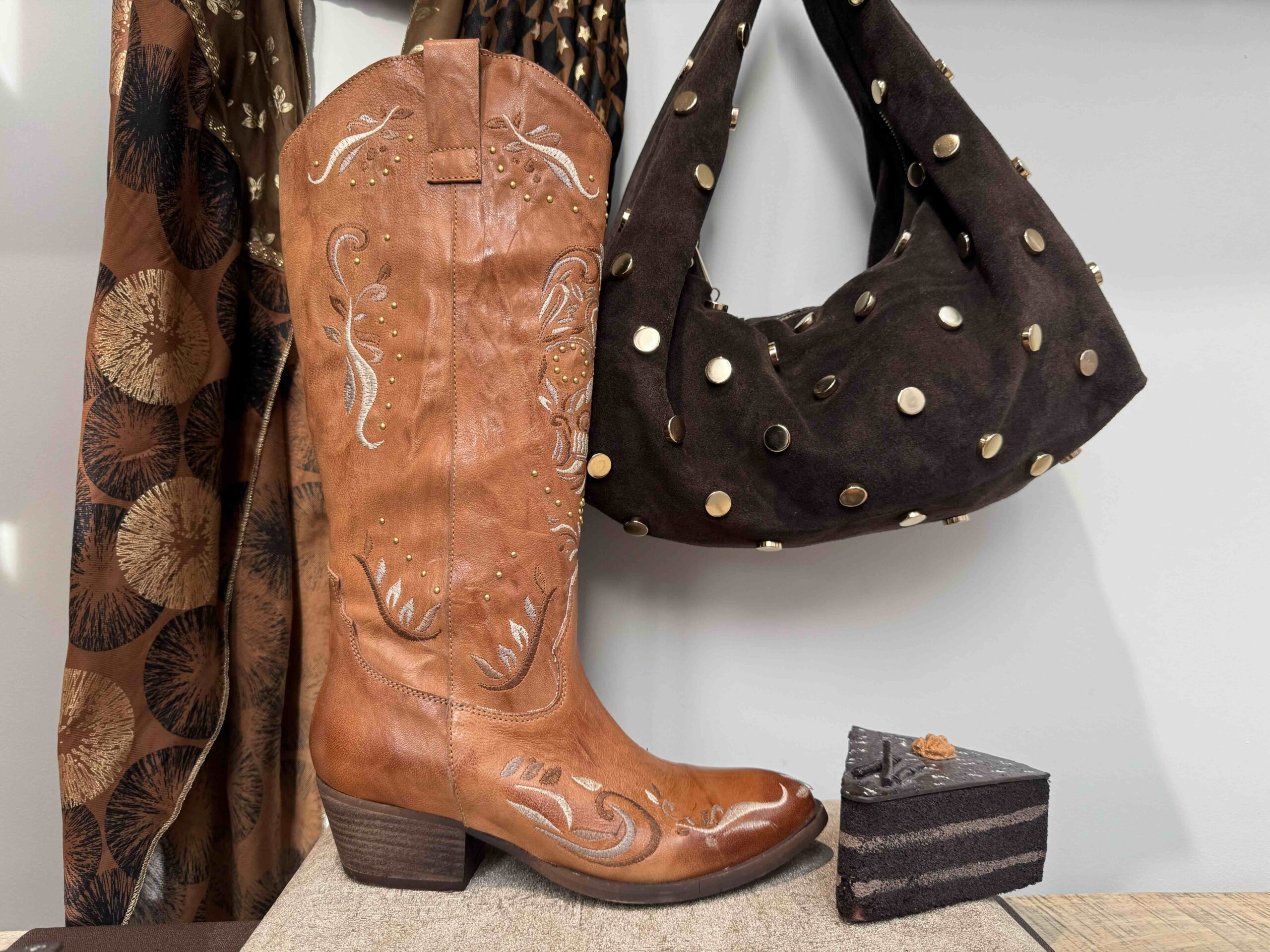 quantité de Santiag ABF97 avec motifs, en cuir camel